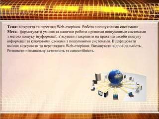 Тема: відкриття таперегляд Web-сторінок. Робота з пошуковими системами