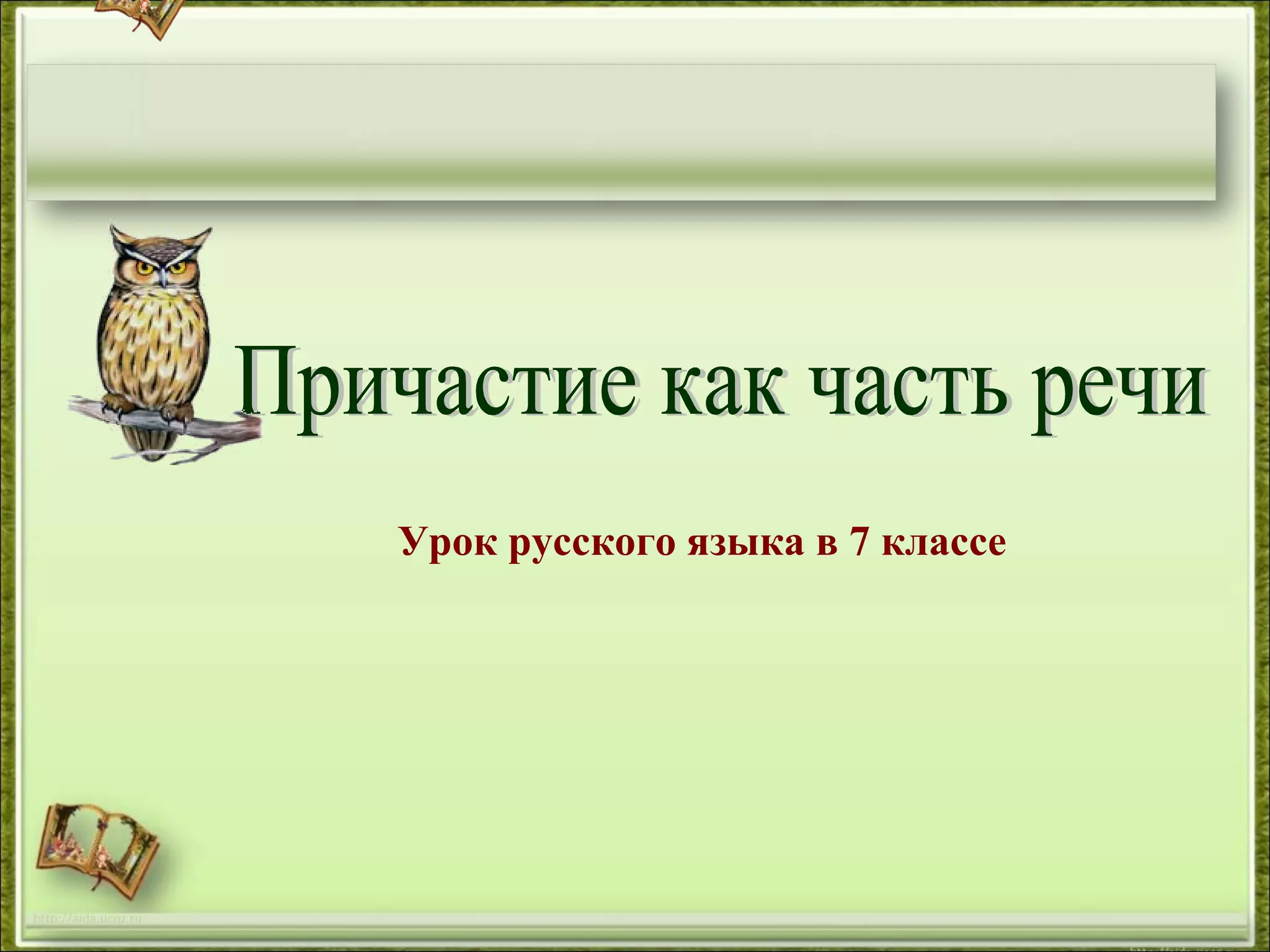 Документ представляет собой урок русского языка для 7 класса, посвященный части речи, а именно прилагательным и причастиям. Приводятся примеры использования этих частей речи, их признаки и роли в предложении, а также задачи для учащихся на закрепление материала. Урок включает вопросы для самоконтроля и активности учащихся.