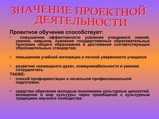 Документ описывает проектную и научно-исследовательскую деятельность государственного образовательного учреждения средняя общеобразовательная школа «Школа здоровья» № 106 в Москве, подчеркивая ее значимость для повышения учебной мотивации и культурных ценностей учащихся. Приведены примеры успешных проектов и конкурсов, в которых участвовали школьники в учебных годах 2008-2009 и 2009-2010. Обсуждаются темы проектов, включая историю, краеведение и иностранные языки.