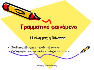 Γραμματικό φαινόμενο Ηφίλη μας η θάλασσα Σύνθετες λέξεις με α΄ συνθετικό το οικο- Ορθογραφία των ρηματικών καταλήξεων –τε -ται