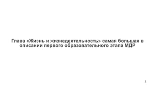 Документ описывает первый этап образования детей до 9 лет, акцентируя внимание на ценностях, радости, добре и зле. Он включает разделы о жизнедеятельности, системе ценностей и формировании навыков управления ценностями у детей. Задача образовательного процесса — помочь детям осознать и применять ценности, а также распознавать добро и зло в своей жизни.