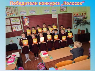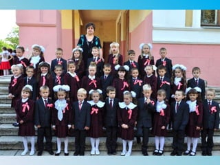 Документ описывает первый день в школе и участие в первой школьной ярмарке. Упоминается о коллективной деятельности и семейных ценностях, таких как спорт и творчество. Основная тема заключается в важности совместных моментов и активности в школьной жизни.