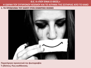 Η ΟΔΥΝΗ ΤΟΥ ΣΥΓΧΡΟΝΟΥ ΚΟΣΜΟΥ ΚΑΙ ΤΟ ΑΙΤΗΜΑ ΤΗΣ ΣΩΤΗΡΙΑΣ ΑΠΟ ΤΟ ΚΑΚΟ
