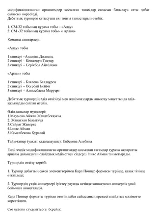 пайдасын қарапайым халық әлі түсінбеуде. Осы дебат сайысы арқылы ГМО қосылған