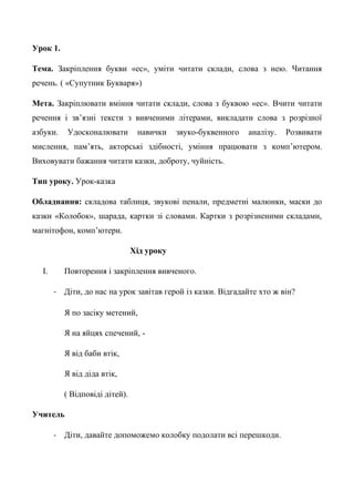 казки «Колобок», шарада, картки зі словами. Картки з розрізненими складами,