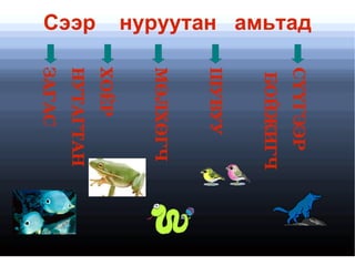 Хүүхдүүд ээ ! Ямар амьтдыг сээр нуруутан амьтад гэх вэ? Мэдэх амьтдаасаа нэрлээрэй! - 7.