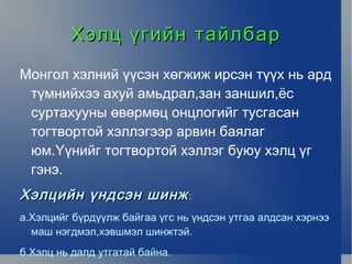 Mongol helny tovch tailbar toli PPTX