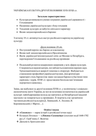УКРАЇНСЬКА КУЛЬТУРАДРУГОЇ ПОЛОВИНИХУІІ-ХУШ ст.