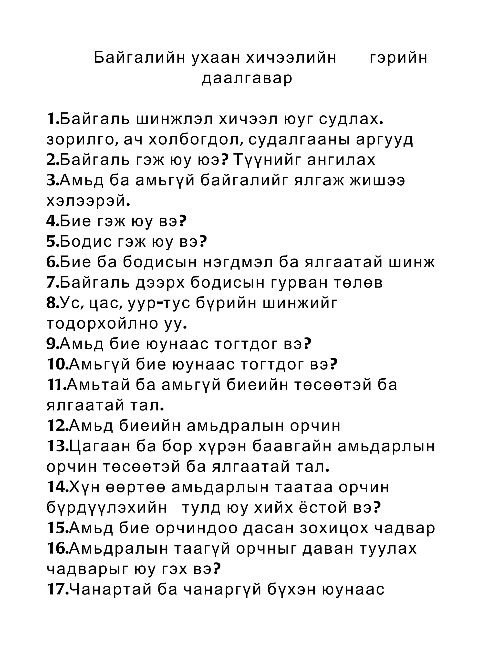 1.Байгаль шинжлэл хичээл юуг судлах .