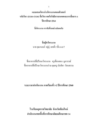 1 แบบเสนอโครงร่างโครงงานคอมพิวเตอร์ รหัสวิชา ง33201-33202 ชื่อวิชา