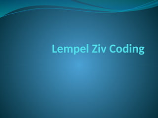 The document discusses Lempel-Ziv coding and its comparison with Huffman coding, highlighting differences in their methodologies and efficiency when compressing data. While Huffman coding requires prior statistical knowledge of the source, Lempel-Ziv coding operates on sequences not previously encountered, allowing for more efficient data compression in certain contexts. The Lempel-Ziv algorithm parses the data into segments, creates a codebook for these segments, and encodes them into a binary form, achieving a higher compression rate than Huffman coding in specific scenarios.
