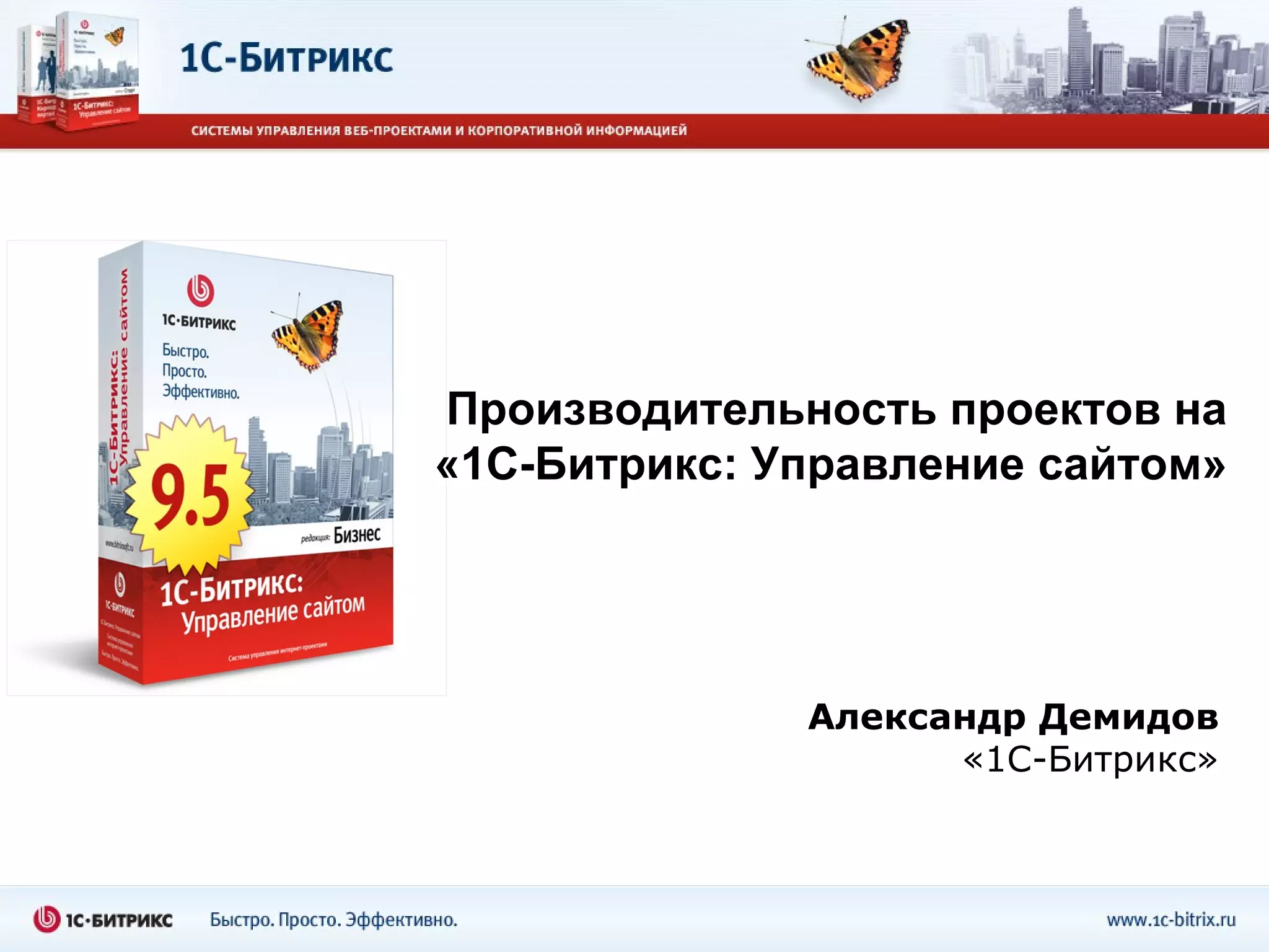 Документ обсуждает важность производительности сайтов на платформе '1С-Битрикс', подчеркивая значение доступности и скорости для лояльности клиентов. Основное внимание уделяется трем ключевым факторам: хостингу, платформе и качеству веб-разработки, которые влияют на производительность проекта. Также рассматриваются технологии виртуализации и настройки кеширования для оптимизации производительности сайта.