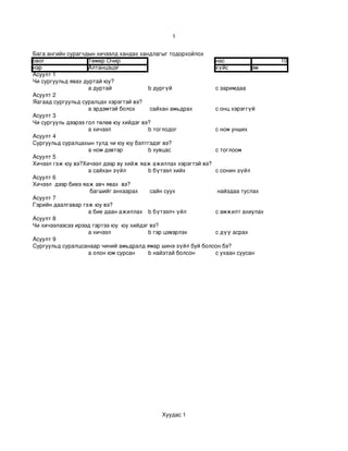 a хичээл b гэр цэвэрлэх c дүү асрах b