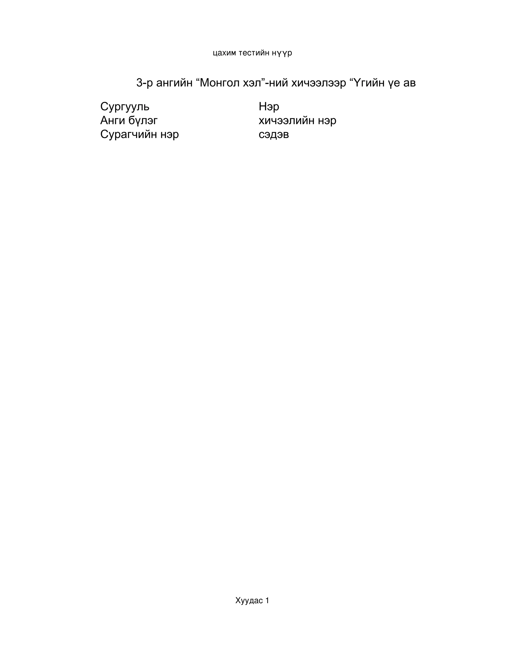3-р ангийн “Монгол хэл”-ний хичээлээр “Үгийн үе авиа үсэг тодорхой