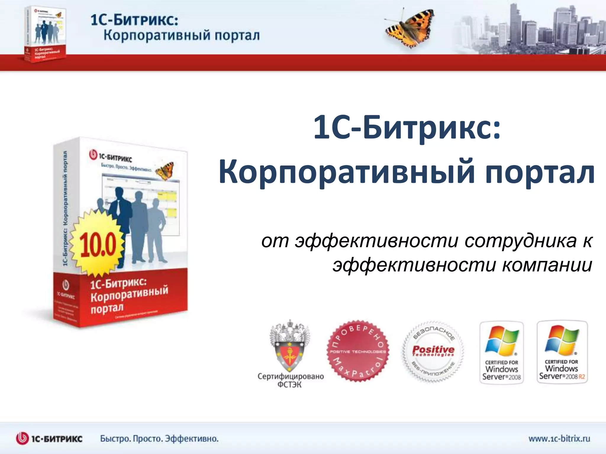 Документ описывает функциональность корпоративного портала 1С-Битрикс, предназначенного для улучшения внутренних коммуникаций, автоматизации бизнес-процессов и повышения эффективности работы сотрудников. Портал включает возможности для коллективной работы, управления документами, задачами и временем, а также интеграцию с различными системами. Основные преимущества включают быстрое освоение пользователями, единую точку доступа к информации и поддержку корпоративной культуры.