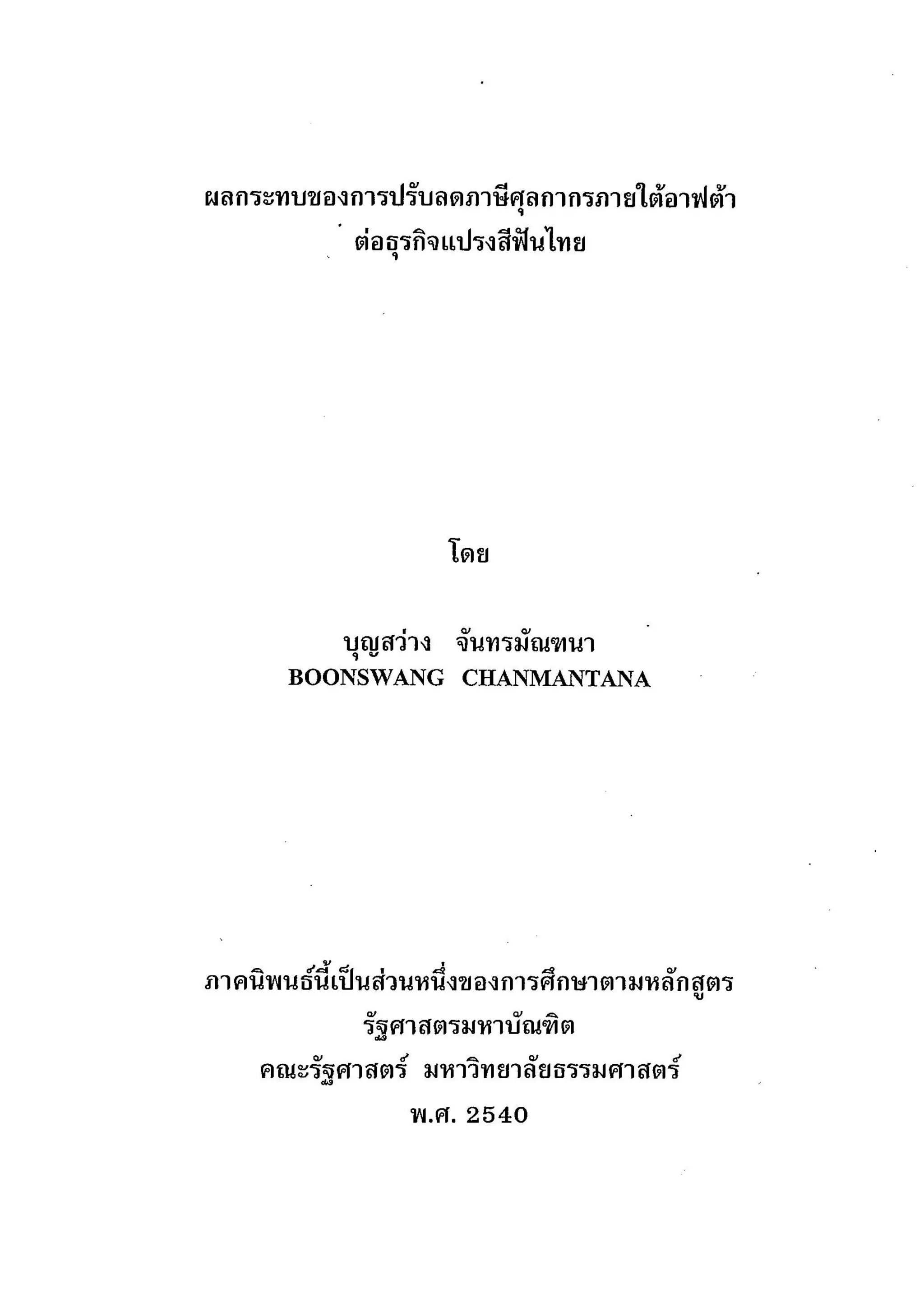ผลกระทบของการปรับลดภาษีศุลกากรภายใต้อาฟต้าAFTAต่อธุรกิจแปรงสีฟันไทย ผู้ประพันธ์โดย บุญสว่าง จันทรมัณฑนา