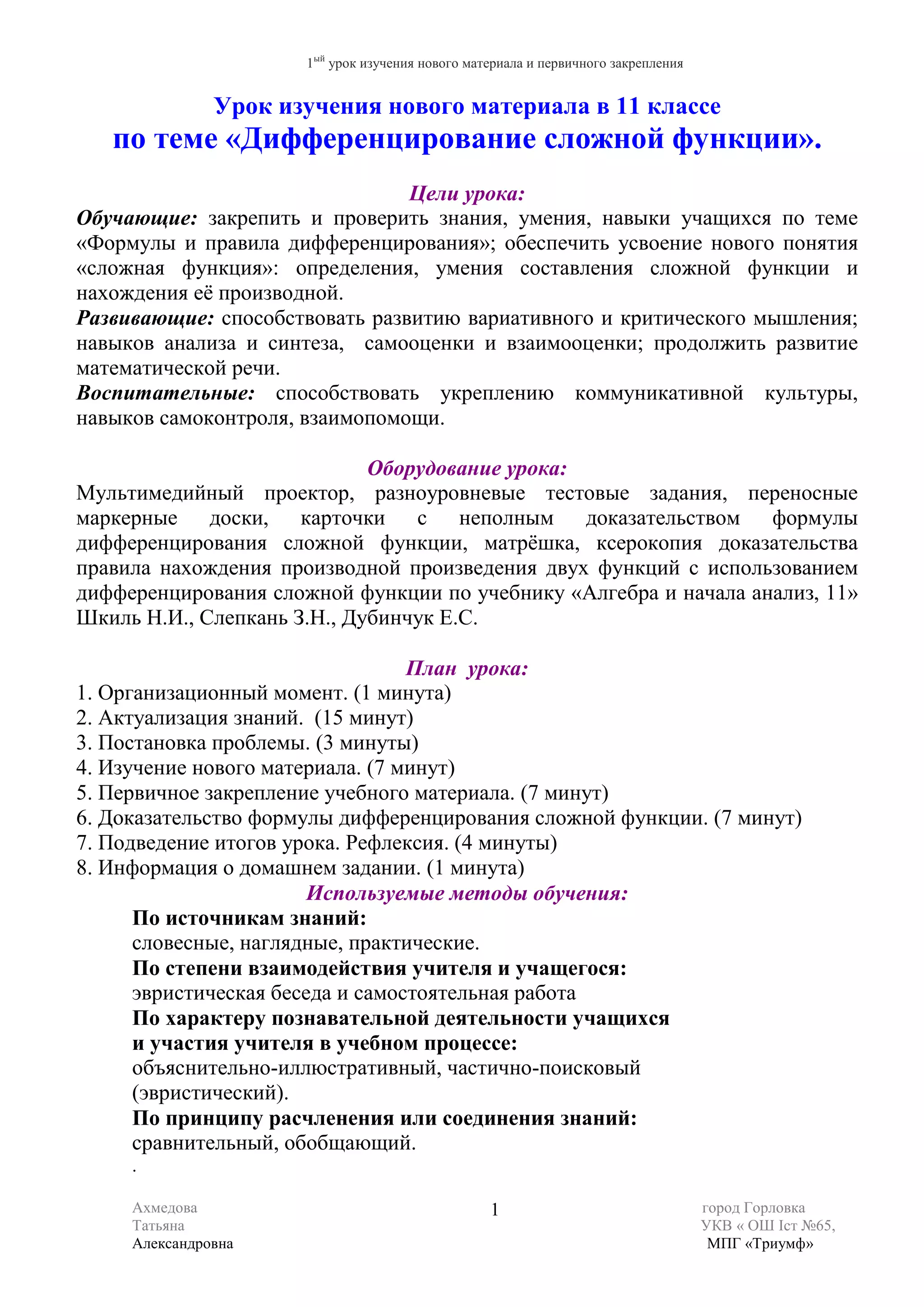Урок по дифференцированию сложной функции в 11 классе направлен на закрепление знаний и умений учащихся в этой области, включая изучение новых понятий. В уроке используются разнообразные методы обучения, включая тестирование и интерактивные элементы для развития критического мышления и математической речи. Домашнее задание разделено на уровни сложности, позволяя учащимся выбрать подходящий для себя уровень работы.