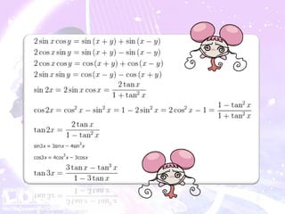 เมื่อกำหนด x และ y เป็นขนาดของมุมใดๆ (0 ≤ x ≤ 2 π , 0 ≤ y ≤ 2 π) จะได้