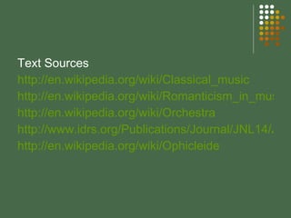 The document discusses the transition from the Classical period to the Romantic period in music. It describes how orchestras grew larger during the Classical period and even more so during the Romantic period. Composers in the Classical period focused on complexity and technical demands for performers, which continued into the Romantic period along with a new emphasis on expressing emotion through music.