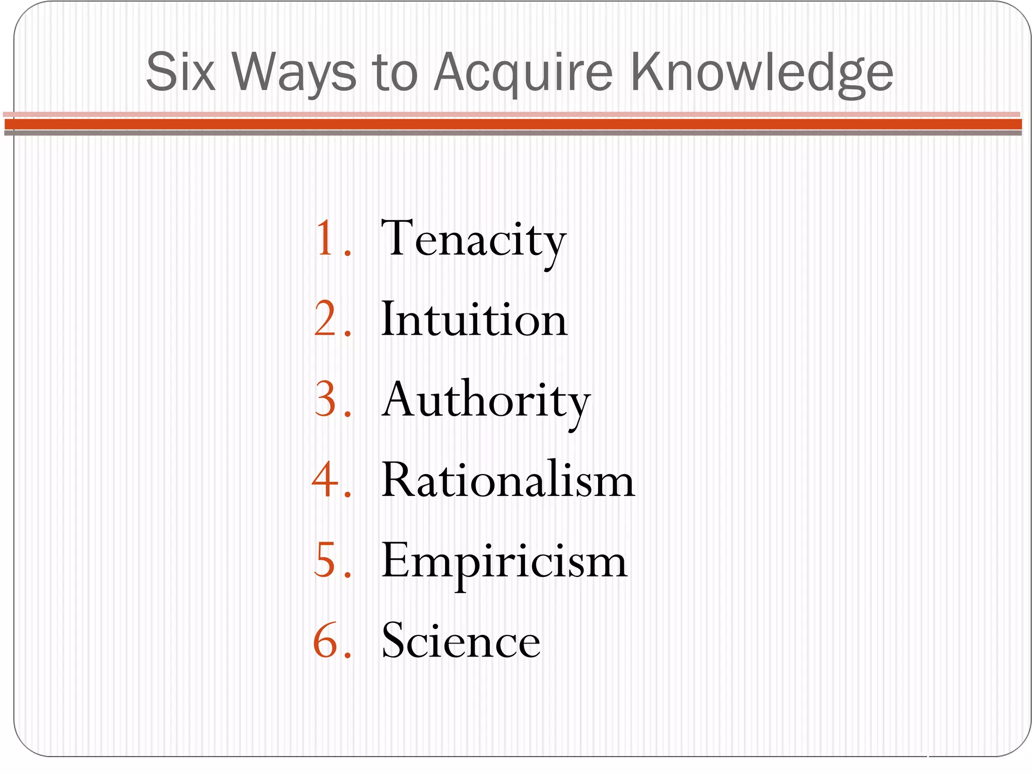 1. Tenacity - Acquiring knowledge through habit or superstition without a mechanism for error correction.