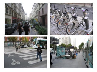 This document discusses changing urban planning paradigms to focus on mobility rather than just transit. Key points include: