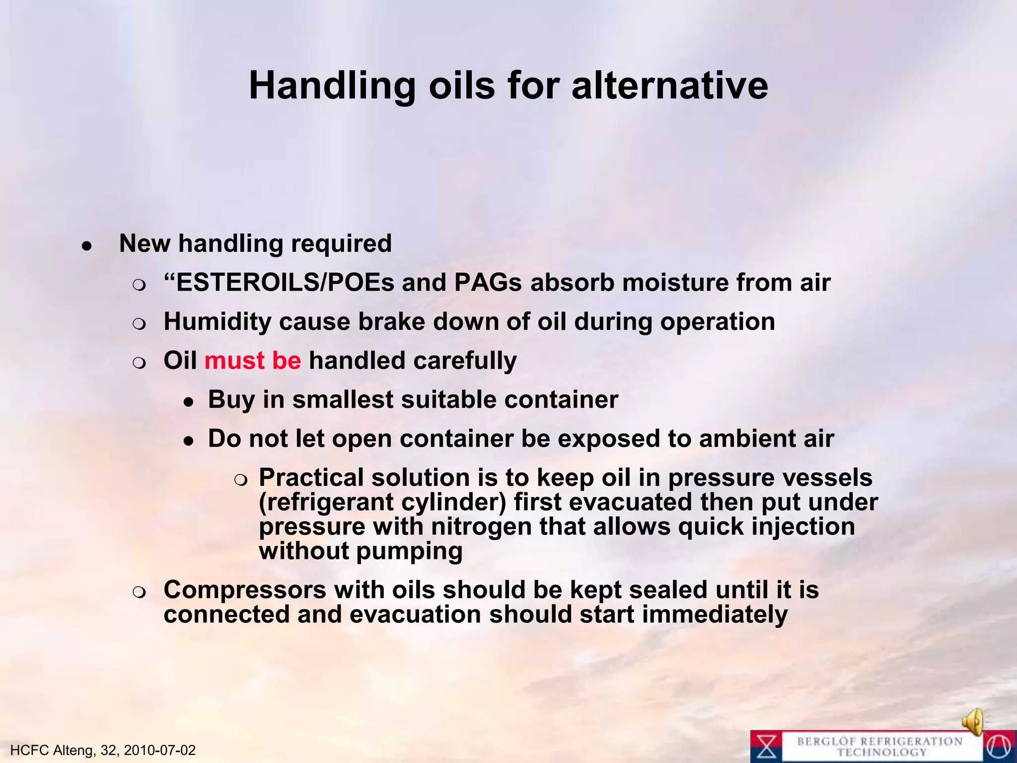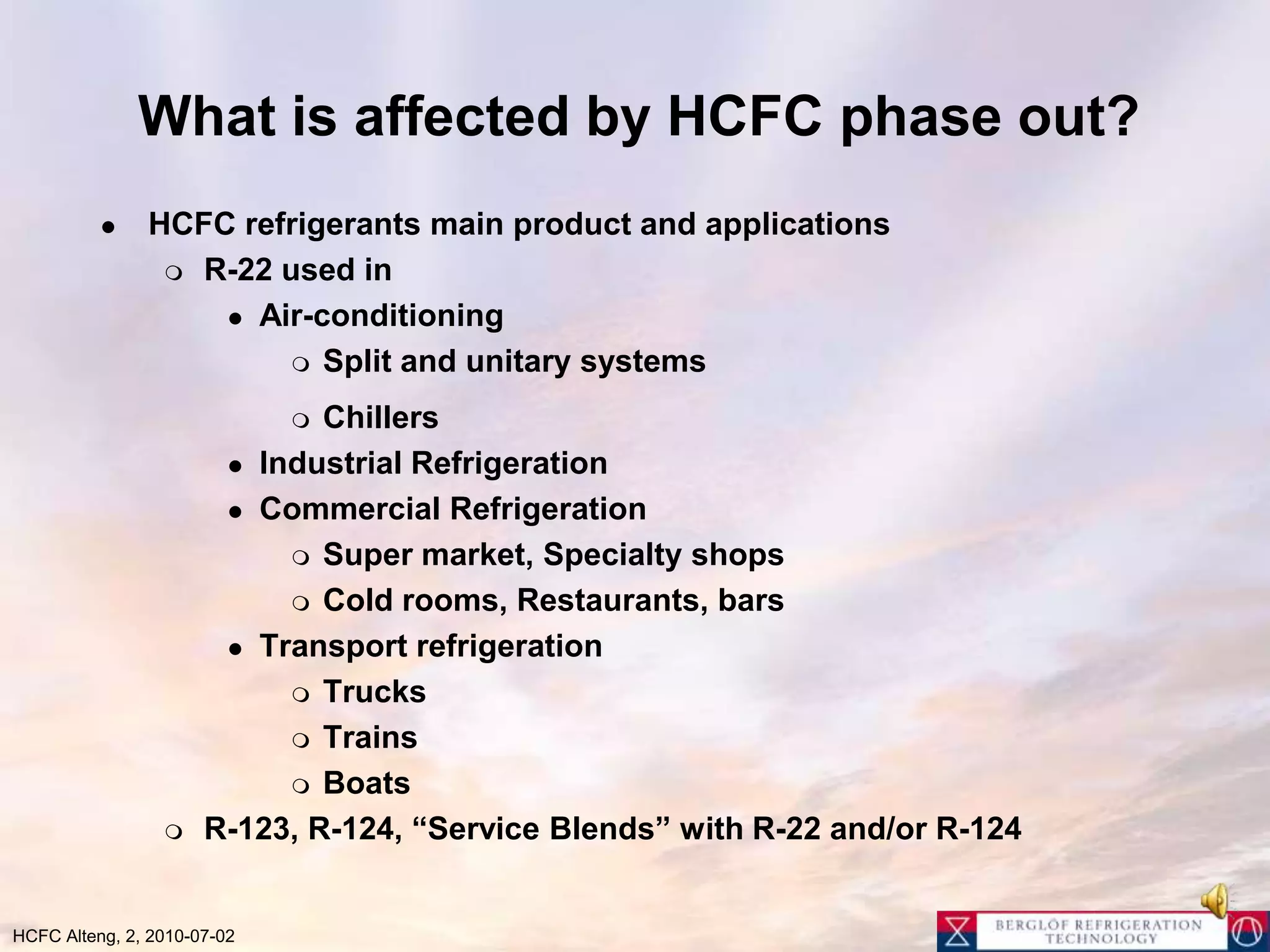 The document discusses the phase-out of HCFCs in refrigeration and air conditioning, exploring alternatives such as ammonia, hydrocarbons, carbon dioxide, and hydrofluorocarbons (HFCs). It highlights the need for careful evaluations of current systems, installation practices, and oil compatibility during retrofits. Additionally, it covers various replacement refrigerants, their properties, and the challenges associated with their use and integration into existing systems.
