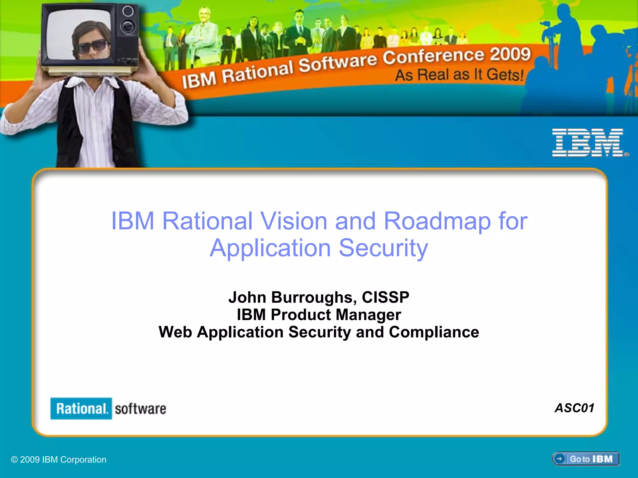 This document provides an overview of IBM's vision and roadmap for application security. It discusses the changing security landscape and growing threats from web applications. It outlines IBM's acquisition of Ounce Labs to strengthen its capabilities in static analysis security testing. The roadmap focuses on adding new language support, improving string analysis, enhancing the static analysis engine, and tighter integration with development tools. It also introduces the AppScan Tester edition to embed security testing into the QA process.