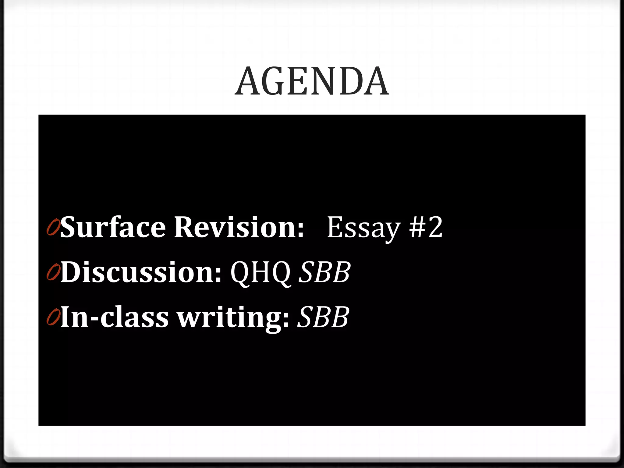2. Having an in-class writing on SBB.
