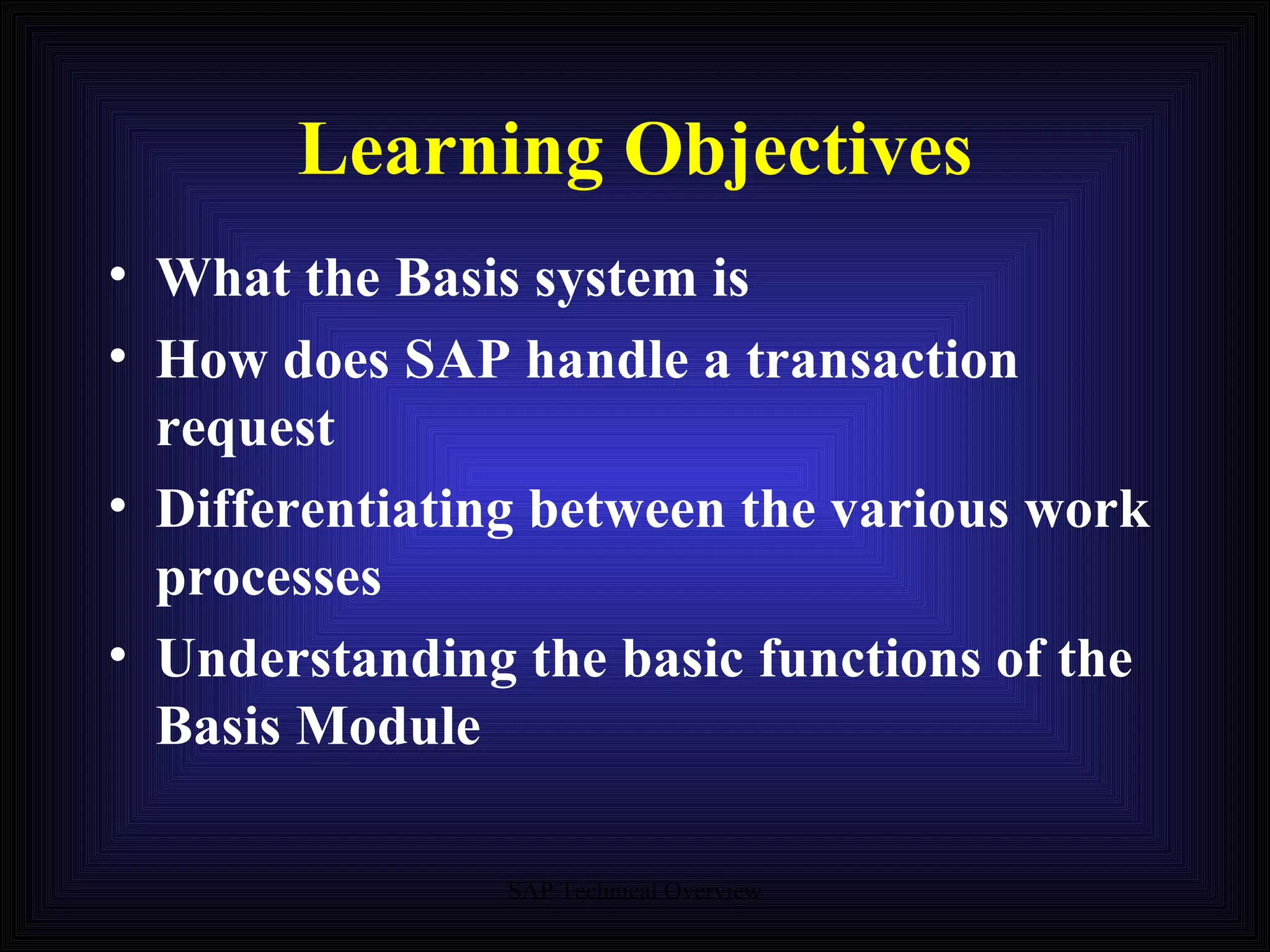 - Understanding the basic SAP system architecture including application and presentation layers, application and database servers, and work processes