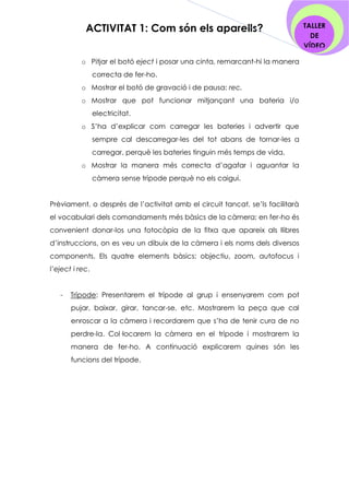 aparells que hauran de manipular: les càmeres de vídeo, el