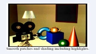 This document discusses computer graphics. It defines computer graphics as the creation, manipulation, analysis and interaction with pictorial representations using computers. Some key points made include: