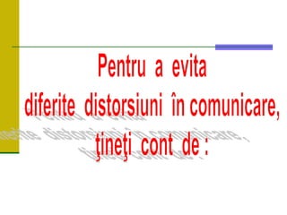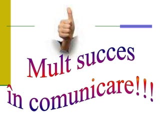 Documentul abordează comunicarea eficientă, definind-o ca proces de transfer de informații între indivizi și organizații, evidențiind cele trei stiluri de comunicare: pasiv, agresiv și asertiv. De asemenea, sunt prezentate elementele și modalitățile de comunicare, inclusiv importanța comunicării nonverbale, care reprezintă 55% din interacțiuni. Se subliniază că abilitățile de comunicare nu se limitează la vorbire, ci includ ascultarea activă și alte forme de expresie.
