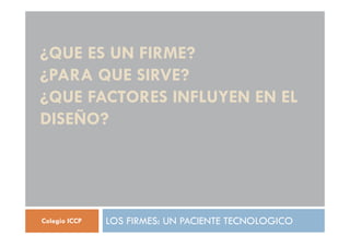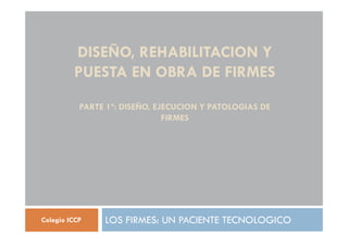 Este documento trata sobre el diseño, rehabilitación y construcción de firmes. Explica que un firme está compuesto por una capa de rodadura, una capa intermedia y una base sobre la explanada. Los factores que influyen en el diseño de un firme son el tráfico previsto, las características de la explanada, la ubicación y los materiales disponibles. El documento también cubre cómo se caracteriza y mejora la explanada, los métodos para seleccionar la sección de firme apropiada y las consideraciones relacionadas con la ubicación y