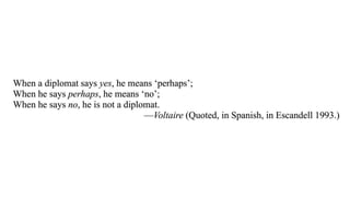 The document discusses the six kinds of context that influence communication: 1) Physical context includes the material surroundings of a communication event. 2) Inner context includes feelings and emotions of participants. 3) Symbolic context includes previous messages that influence understanding. 4) Relational context is the relationship between participants. 5) Situational context is how participants label the event. 6) Cultural context includes communication rules learned from one's culture. The different contexts provide important context to understand meaning in communication.