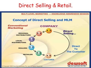 This document summarizes the business model of Dewsoft Overseas, an education company that offers both learning and earning opportunities. It provides computer education courses through various mediums, including online learning. It also allows people to earn an income by recruiting others for its independent business opportunity (IBO). Through the IBO, one can earn commissions from their own recruits and those in their recruitment team. With success in building a large team, it is possible to earn a substantial residual income through royalty payments.