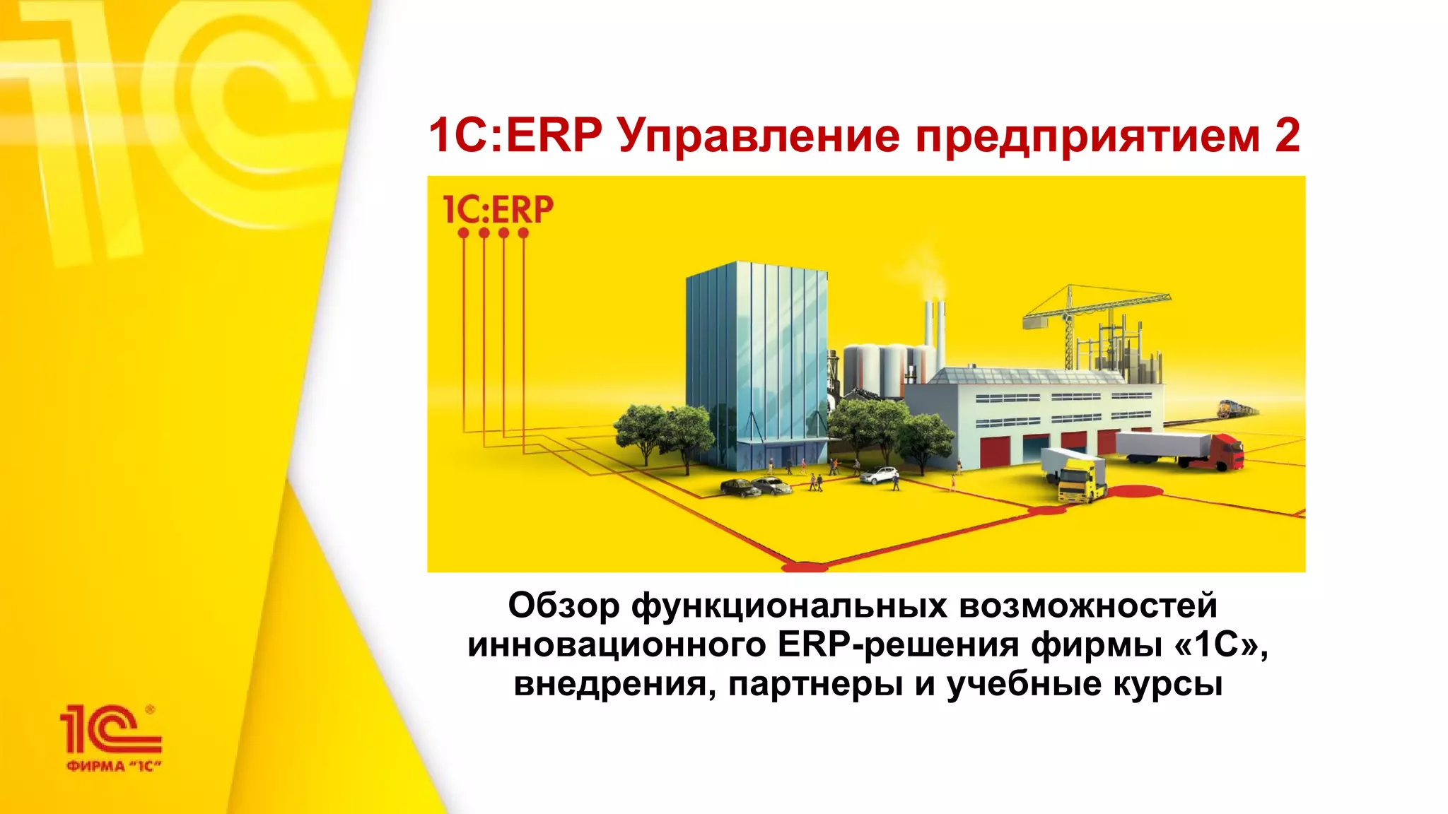 Документ представляет обзор функциональных возможностей ERP-системы '1С: ERP управление предприятием 2', акцентируя внимание на ее инновационных решениях для автоматизации управления крупными и средними предприятиями. Система предлагает широкий спектр функций, включая управление производственными процессами, бюджетирование, учет финансов и регистрацию затрат, обеспечивая гибкость и эффективность для пользователей. В документе также подчеркивается высокая удовлетворенность клиентов и конкурентоспособность '1С' на рынке ERP-систем.