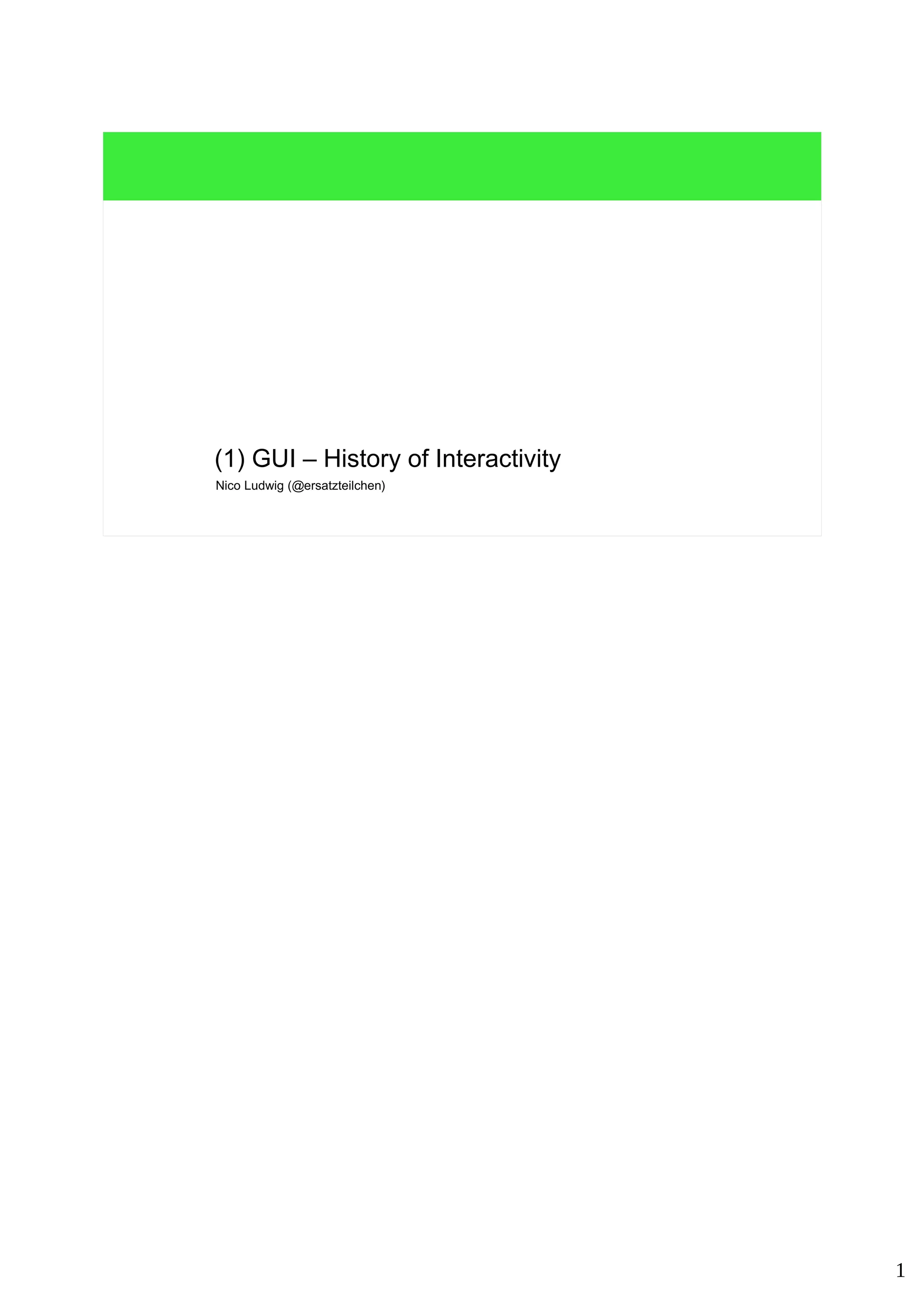 The document explores the history of interactivity in computing, detailing the evolution from early data processing using punch cards and light bulbs to more advanced user interfaces involving keyboards, screens, and graphical displays. It highlights key developments such as the transition from batch processing to real-time interactivity, the introduction of command-line interfaces, and significant applications like VisiCalc that changed user perceptions of computers. The discussion also covers technological advancements in display types, moving from vector to raster displays, which enabled richer graphical interactions.