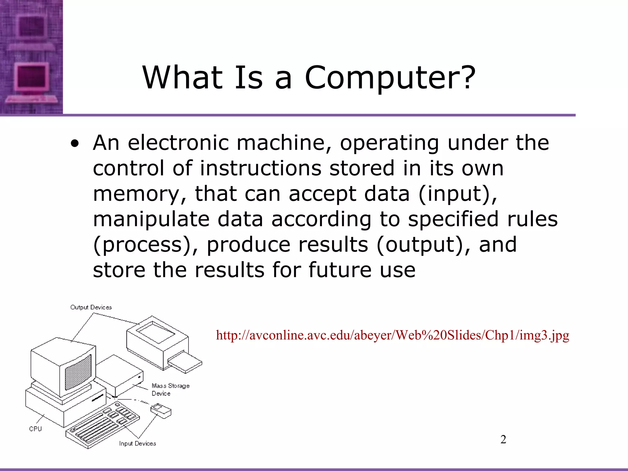 The document provides an overview of the history and definition of computers. It discusses how computers are electronic machines that can accept data as input, manipulate it according to stored instructions, and produce and store output. The definition of a computer is explained in terms of the work it does, the information it handles, and its size/price. Categories of computers include mainframes, PCs, embedded chips, and internet/cyberspace computers. Moore's Law states that chip transistor density doubles every 18 months at constant prices. Computer networks connect two or more computers to share and exchange information and resources. The course objectives are to explore computer applications and their impact/issues in society.