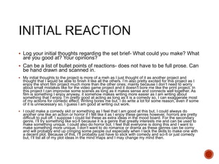 Jack plans to make a short comedy film involving a teleportation device. He will use a duo of main characters like in the movies in his mood board which feature pairs working together. The mood board influences him to use lighter colors and different character types that complement each other. He will study camera shots, slapstick comedy techniques, and research how to use the camera. He will survey students and use YouGov to research audiences. Locations will include college corridors and hopefully a classroom for the scene finding the teleporter.