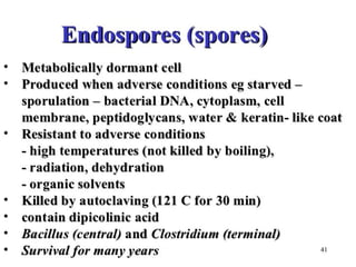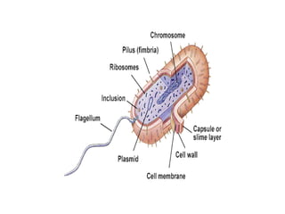 This document provides an introduction to the field of medical microbiology. It discusses important events in the history of microbiology including the discovery of microorganisms by Anton van Leeuwenhoek in 1674. It also outlines Koch's postulates for identifying pathogenic microbes and describes the main branches of medical microbiology. The document then examines the structures and characteristics of prokaryotic and eukaryotic cells, highlighting differences between bacteria, archaea, and eukaryotes. It provides details on bacterial cell structures including the cell wall, cell membrane, flagella, pili, and endospores. The principles of staining bacteria and classifying them are also summarized.