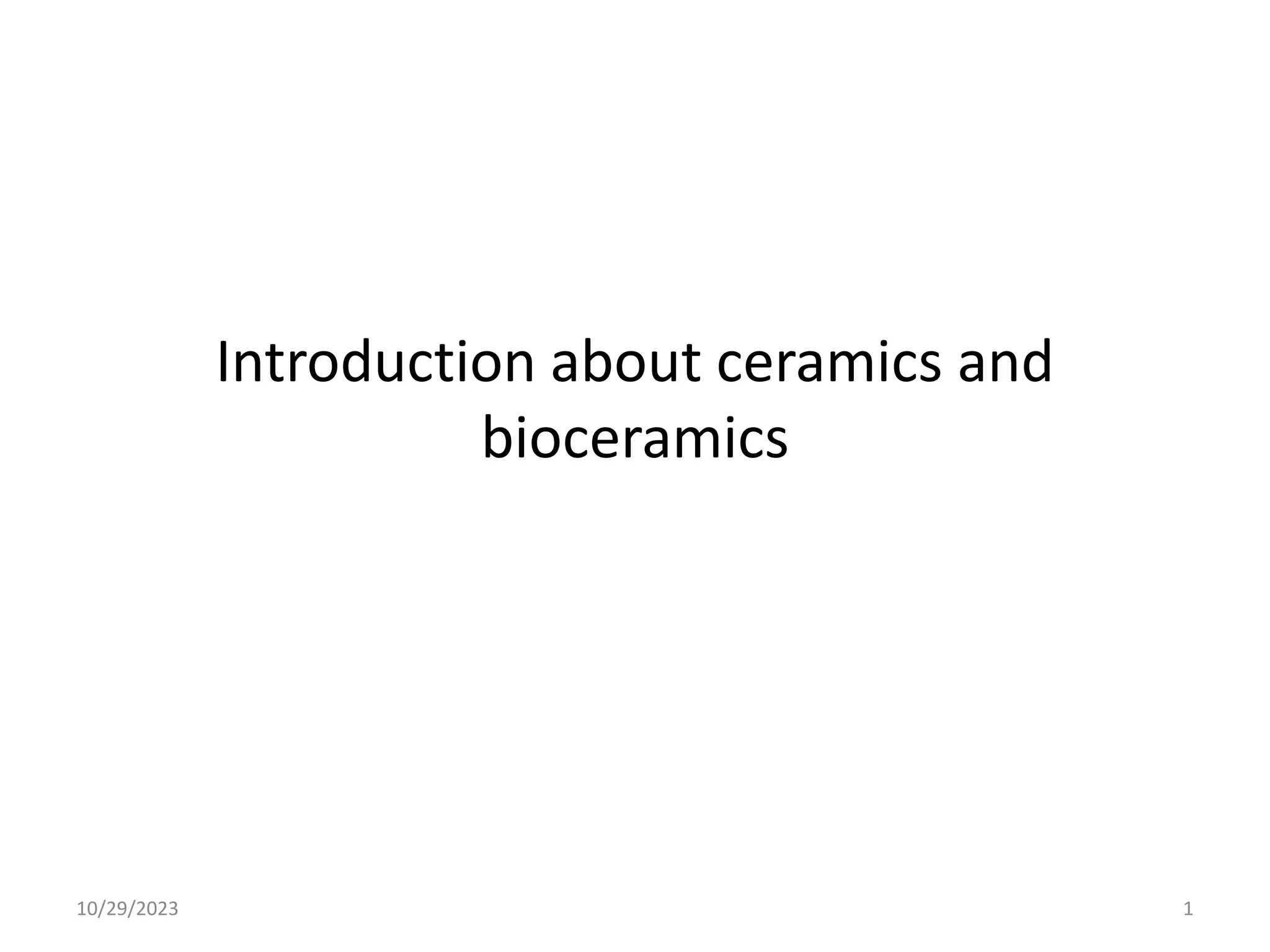 This document provides an introduction to ceramics and their classification. It discusses that ceramics are inorganic compounds composed of metallic and non-metallic elements bonded ionically or covalently. Ceramics can be classified by their application, structure, or composition. Common structures include crystalline structures like rock salt and zinc blend. Ceramic properties include hardness, high melting temperatures, and electrical/thermal insulation. Due to these properties, ceramics find applications in areas like aerospace, automotive, electronics and more. The document also discusses ceramic crystal structures, imperfections, and phase diagrams.
