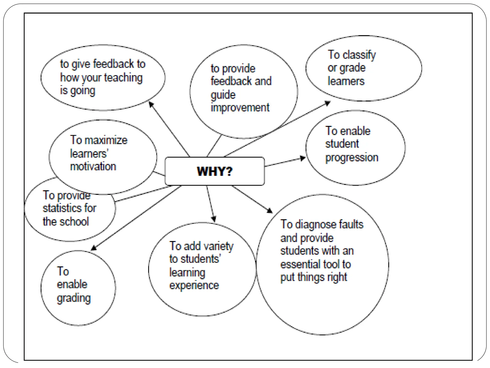 The document outlines the objectives and importance of language testing in teaching English as a foreign language, emphasizing the need for teachers to enhance their skills in creating and administering assessments. It differentiates between testing, measurement, assessment, and evaluation while highlighting traditional and alternative forms of assessment. Additionally, it discusses the roles of testers, test takers, and test users, as well as the overall impact of testing on student motivation and self-esteem.