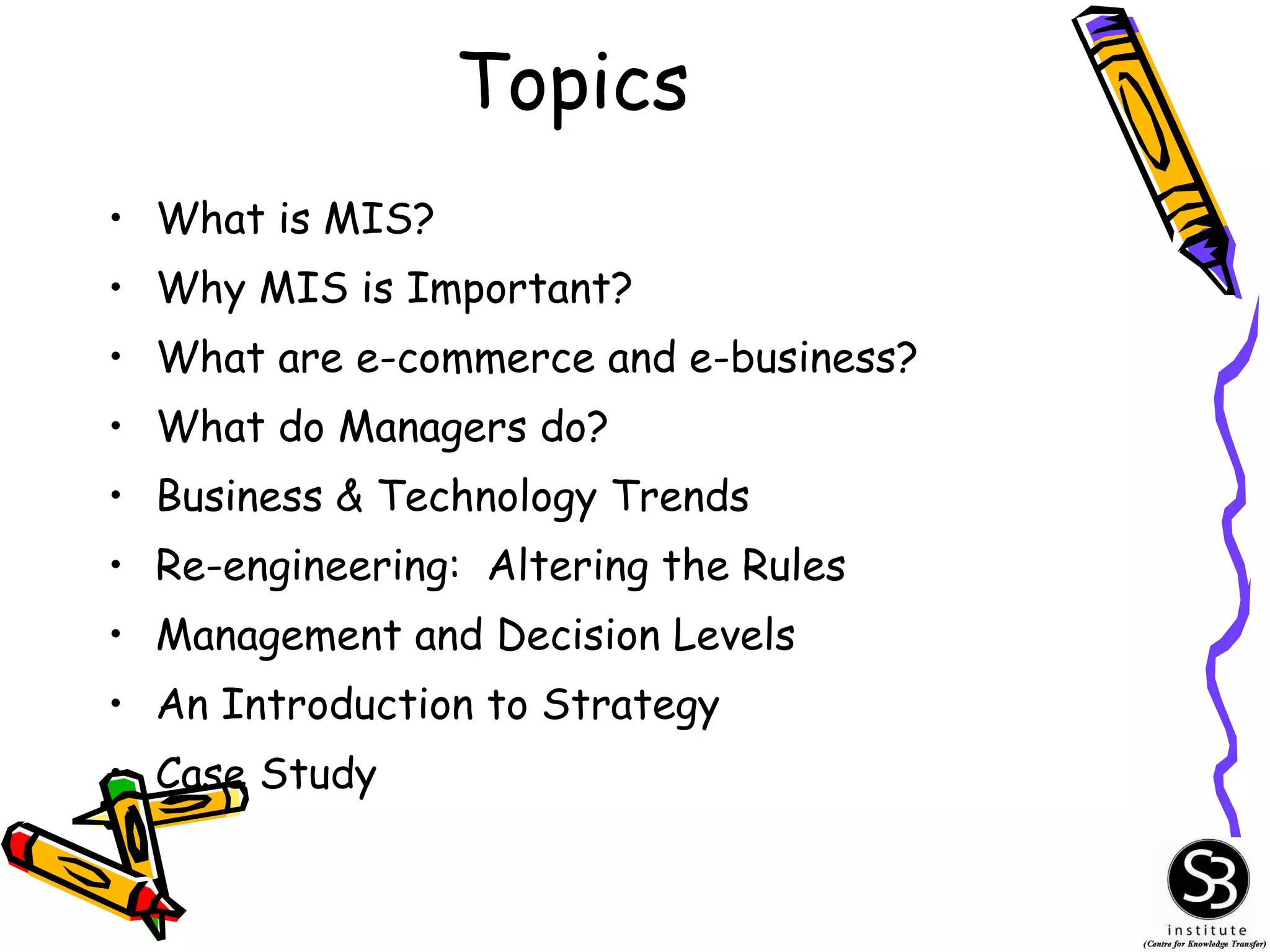 This document provides an introduction to management information systems (MIS). It discusses key topics such as what MIS is, why it is important, and how managers use information. It also covers business and technology trends that are shaping MIS, such as increased specialization, mergers, decentralization, and the need for improved communication and customer service. Managers are increasingly relying on information and technology to make strategic, tactical, and operational decisions to guide their organizations.
