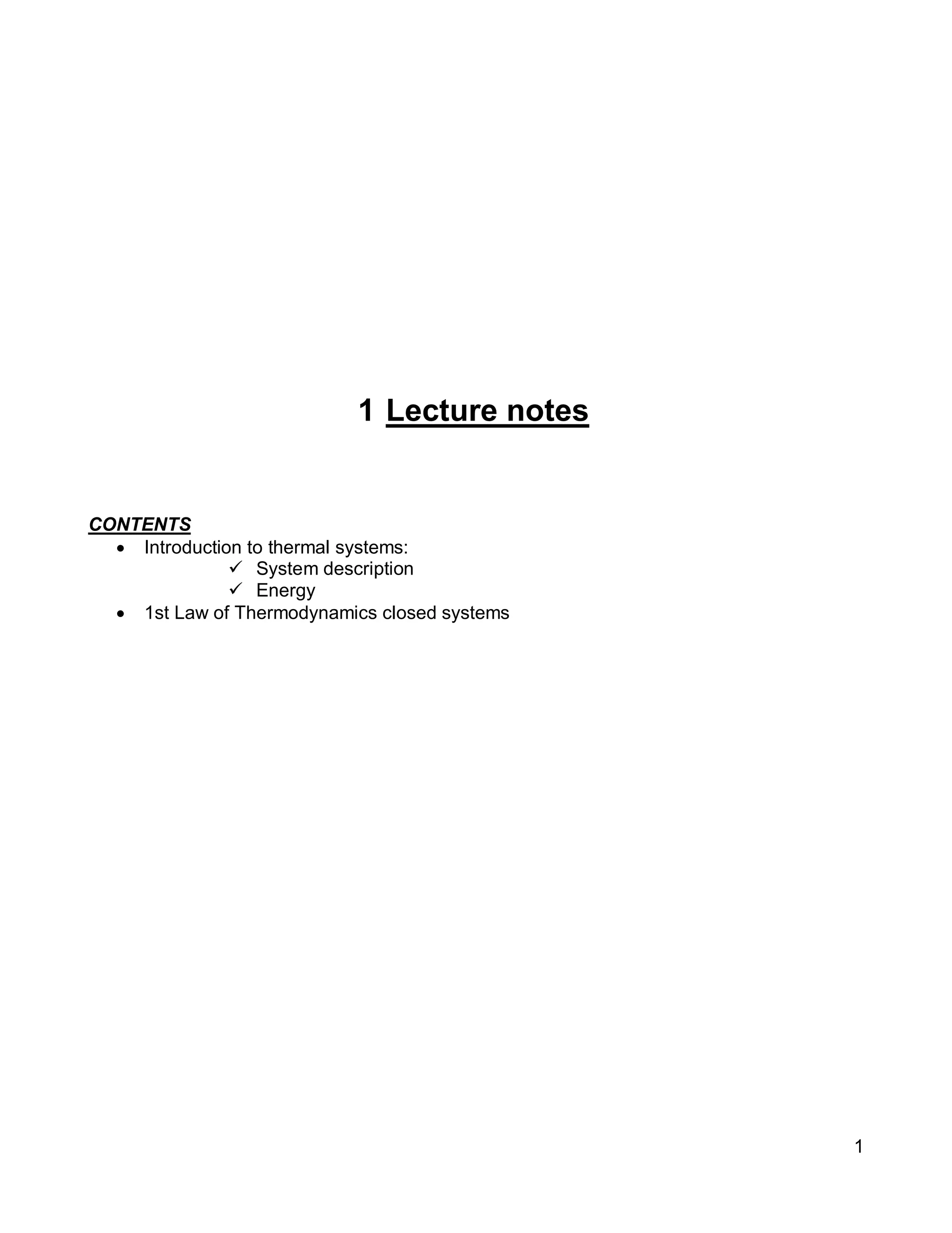 1. The document provides an introduction to thermal systems and the first law of thermodynamics for closed systems.