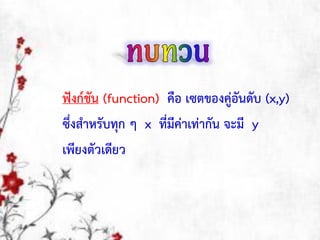 ฟังก์ชัน (function) คือเซตของคู่อันดับ (x,y)