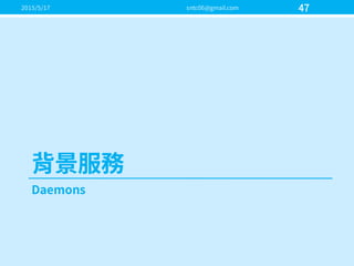 The document provides information on systemd service management commands. It shows examples of using systemctl to start, stop, restart, and check the status of the httpd service. It also displays the output of systemctl status httpd which shows details about the loaded unit, active state, process IDs, and log entries for the Apache HTTP Server service.