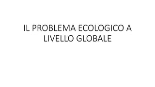 Il documento esamina il problema ecologico globale, evidenziando l'interazione tra ecosistemi, cambiamenti climatici e inquinamento, nonché il ruolo delle risorse naturali. Descrive gli ecosistemi naturali e artificiali, la biodiversità e le varie forme di inquinamento, come quello atmosferico, idrico e del suolo. Infine, illustra le catastrofi naturali e i rischi ambientali legati all'eccessivo sfruttamento delle risorse naturali e all'attività umana.