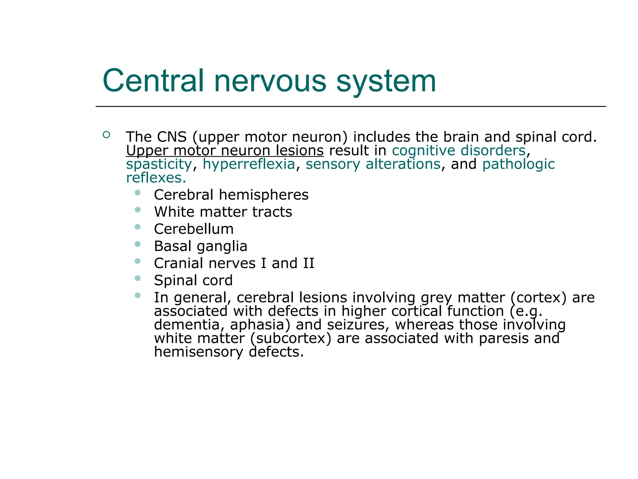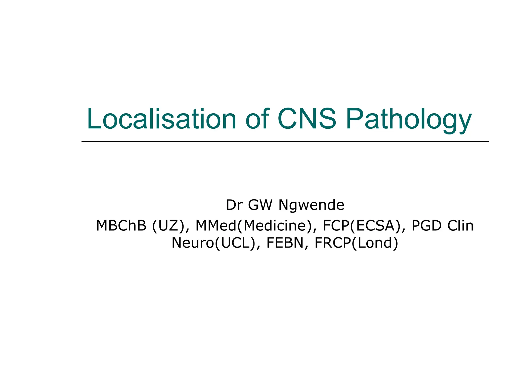 The document discusses the localization of central and peripheral nervous system pathology, detailing the functions and common lesions associated with various brain regions and spinal cord areas. It highlights how lesions affect motor and sensory functions, leading to specific clinical manifestations such as weakness, sensory deficits, and cognitive disorders. Additionally, it explores imaging modalities like CT and MRI for diagnosing these conditions, emphasizing their advantages and limitations.