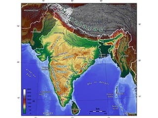 The document discusses the formation of oceans on Earth. As the molten surface cooled over time, volcanic gases formed an atmosphere and water condensed from the atmosphere to form oceans. Life then emerged in the oceans. The three major oceans - Pacific, Atlantic, and Indian - formed as the supercontinent Pangaea broke apart. These oceans have varying depths, islands, currents, and features such as coral reefs and mid-ocean ridges. The document also describes how salinity and temperature vary in ocean waters due to factors like evaporation, rainfall, and ocean currents.
