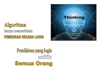 Dokumen ini membahas tentang algoritma dalam pemrograman berbasis objek menggunakan Java, menjelaskan definisi, karakteristik, syarat, dan tahapan pembuatan algoritma. Terdapat penekanan pada pentingnya algoritma yang efisien dan tepat dalam menyelesaikan permasalahan, serta tahapan dari mendefinisikan masalah hingga memperbaiki kesalahan program. Selain itu, dokumen ini juga memberikan tugas untuk membuat algoritma menggunakan flowchart atau flowmap dalam konteks aplikasi sehari-hari.